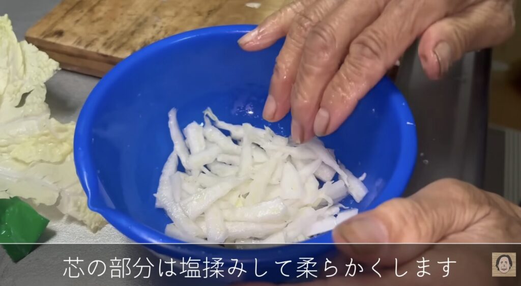 細かく切った白菜を、少しの塩でもんで水気を切って、
