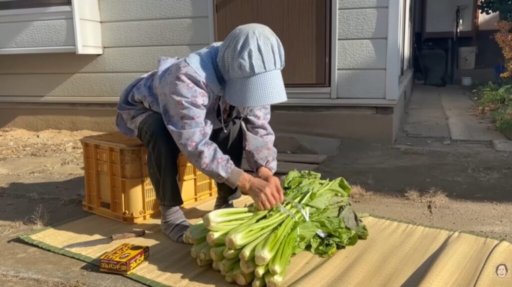 おばあちゃんは根元に切り込みを入れながら、「中に土が入ってるから、切り込みを入れないと洗えない」と教えてくれました。