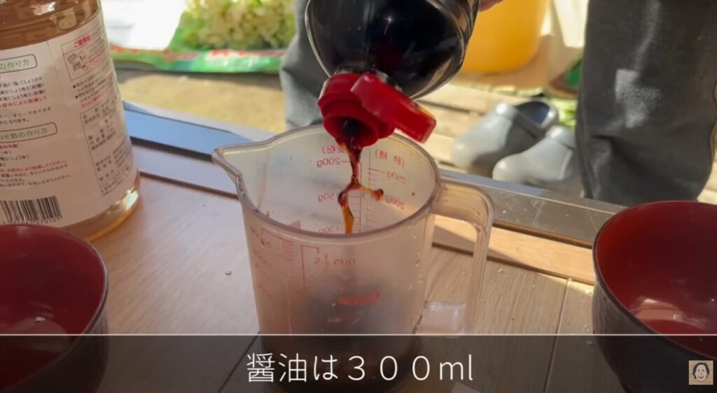 野沢菜5キロに対して、塩130グラム、砂糖350グラム、醤油300ml、お酢300mlが基本の分量です。